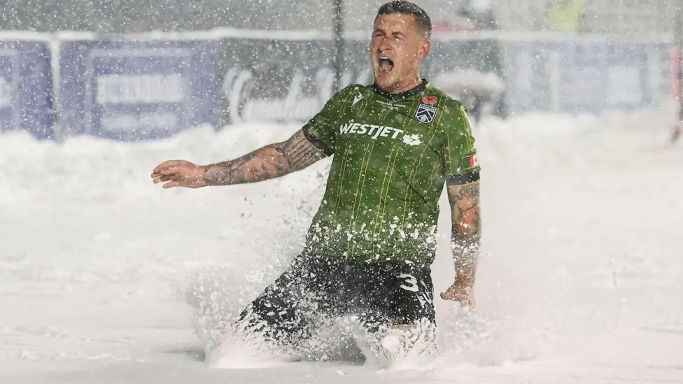 Cavalry FC struck first in the 33rd minute when Fraser Aird calmly scored from the penalty spot while wearing short sleeves. He celebrated with a snowy knee slide that summed up the crazy conditions. The visitors looked more comfortable at first, but the lead did not last long.